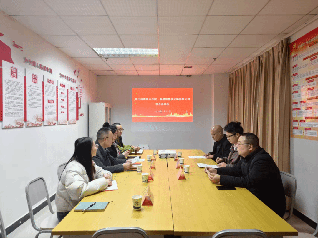 近期,重庆传媒职业学院与地方政府、企业举行专题洽谈会,共商电商人才培养合作。领储(重庆)智慧供应链科技公司总经理陈坤、巴川街道人大工委主任万波、经济发展办公室主任曾凡绪到校交流。副校长刘永春携就业处副处长张雪、数智财商学院相关负责人共同参会。